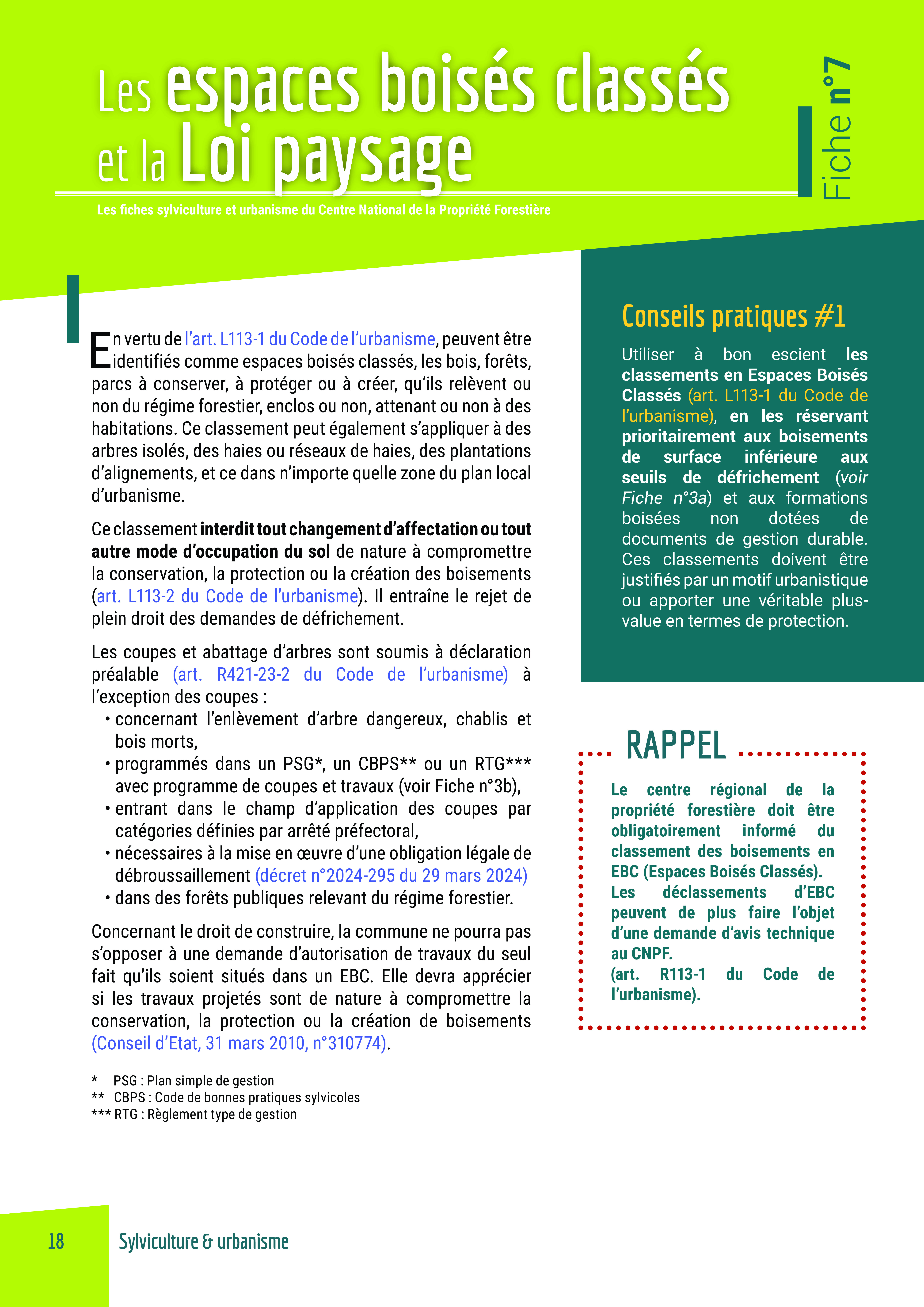 Urbanisme et forêt. Fiche n°7 - Les espa...